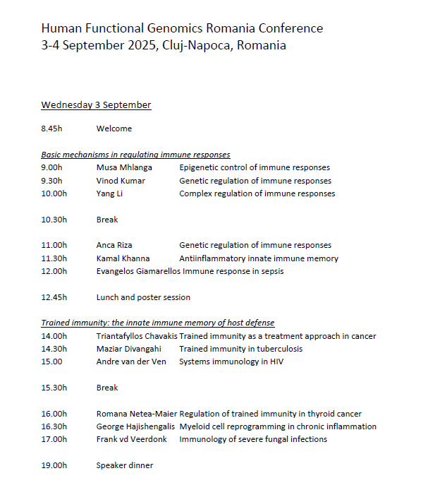 The Human Functional Genomics Romania invites you on September 3-4 2025, in the beautiful city of Cluj-Napoca for the First Conference of the Human Functional Genomics Romania initiative.